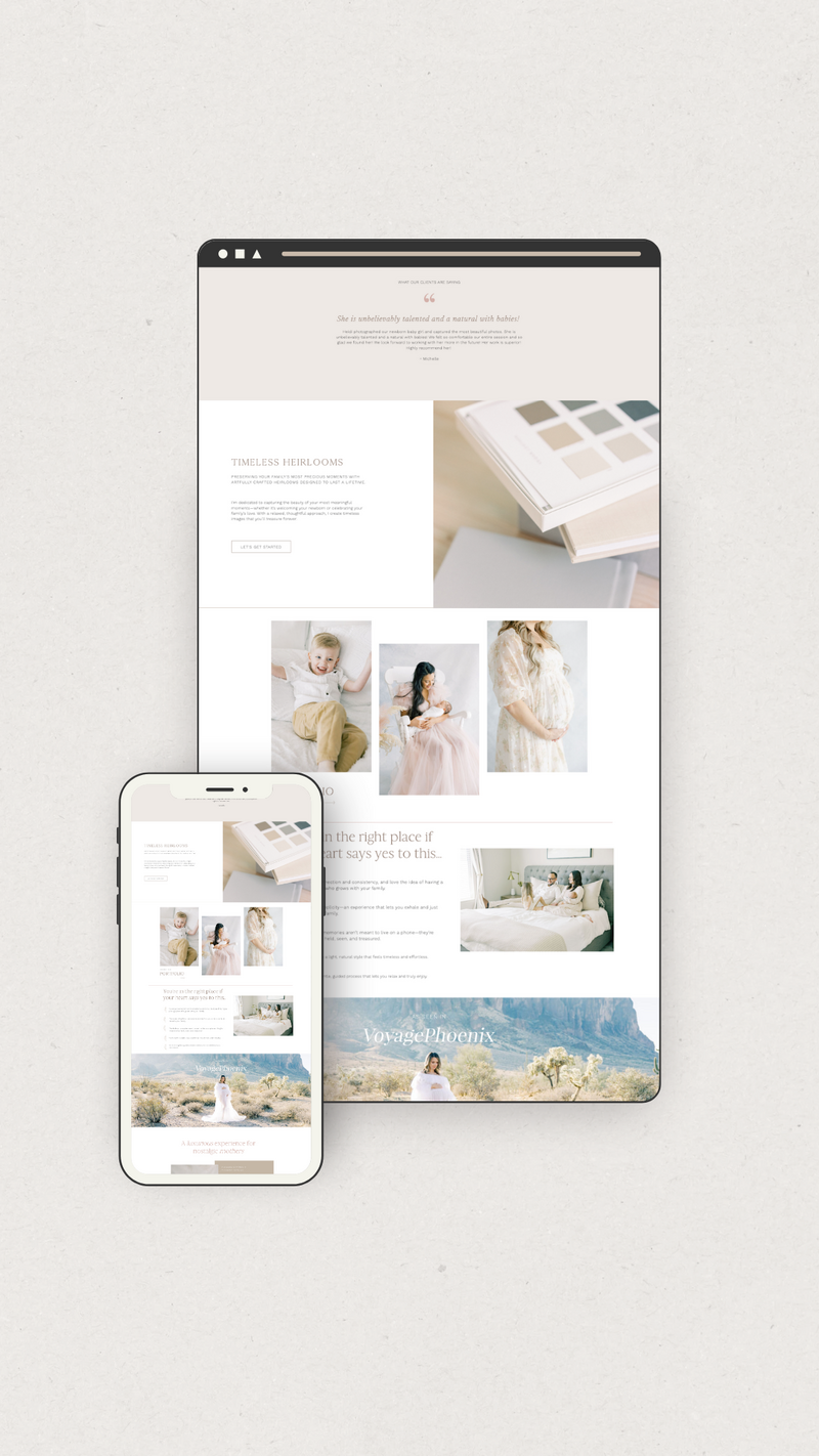 Our semi custom and custom designs are built with the foundation of one of our website templates (or yours). Every Showit site starts with a base web template and we base each custom design on your brand with the back bone of some of our most popular templates.